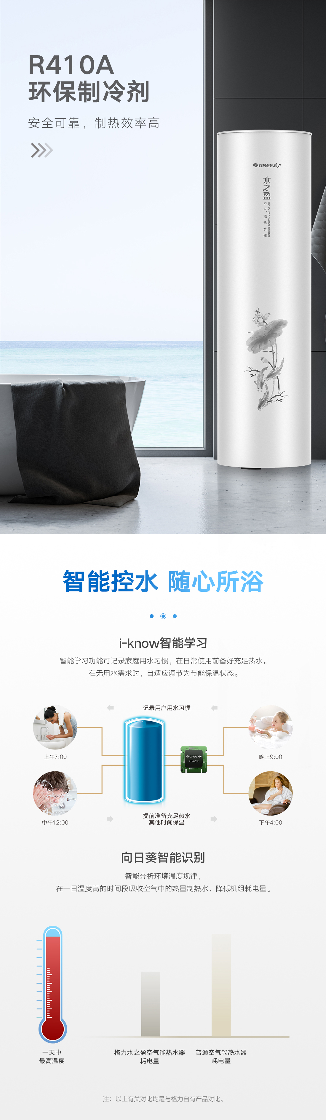 新型環(huán)保冷媒,綠色節(jié)能更高效,內(nèi)置增容、向日葵、i-know等個(gè)性化功能;給您的沐浴帶來多樣化體驗(yàn)